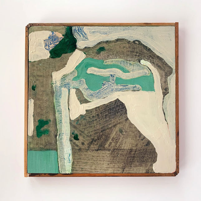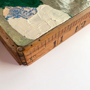 A collection of small multi-media abstract paintings framed by hand using vintage wooden rulers. The works incorporate thick impasto paint, alongside thin glazes, poured on resin and collaged elements. They are an exploration of the textural qualities of paint. A gloss finish accentuates the marks and the frames add a three dimensional quality, bridging the gap between fine art painting and hand-crafted object.